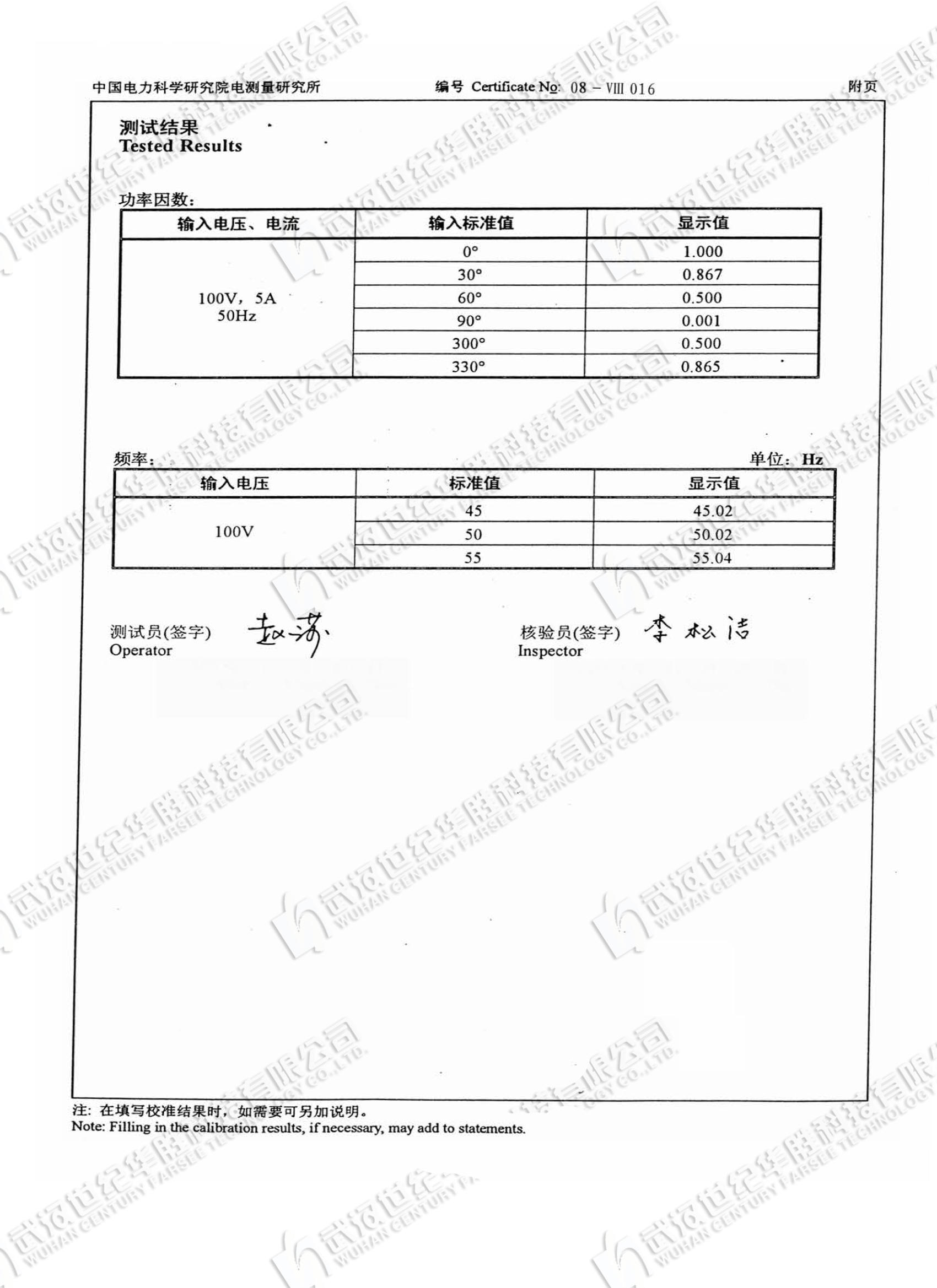 基波电压和电流之间相位差的测量误差:≤0.2°