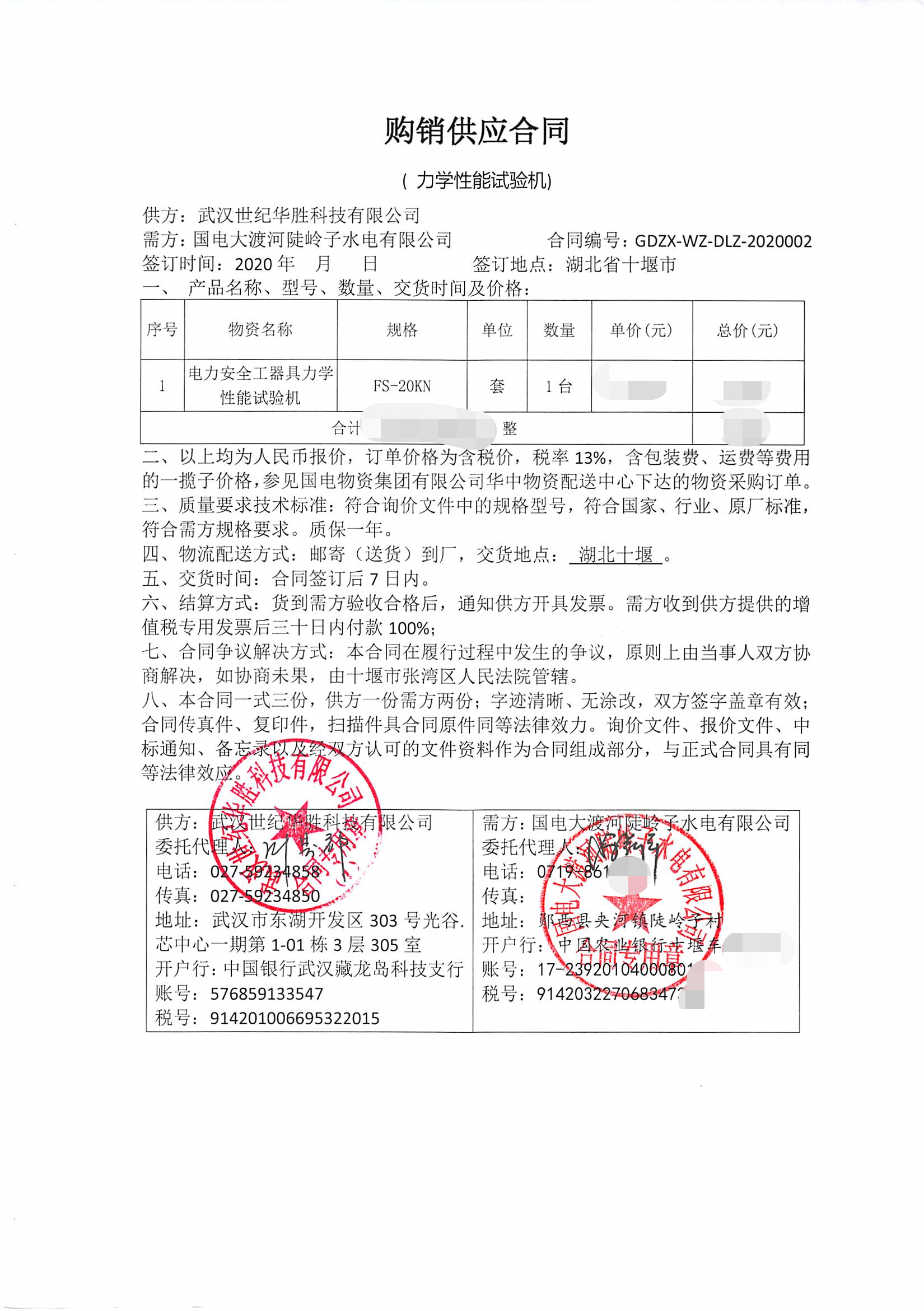 国电大渡河陡岭子水电有限公司电力安全工器具力学性能试验机的采购