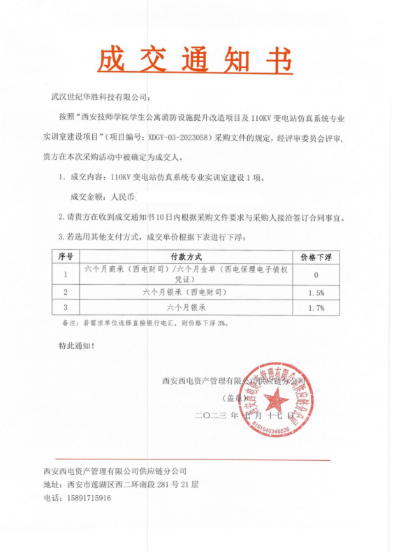 热烈庆祝金彩汇在西安技师学院学生公寓消防设施提升改造项目及110KV变电站仿真系统专业实训室建设项目圆满结束