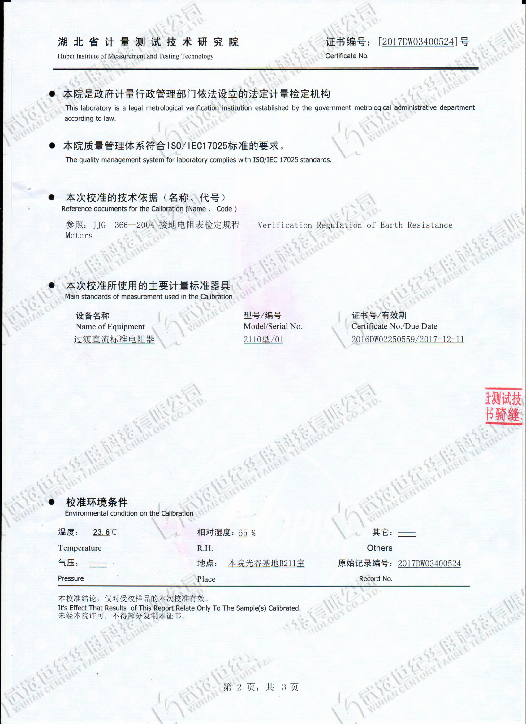 产品标准:DL/T 845.2-2004 电阻测量装置通用技术条件 第2部分 工频接地电阻测试仪