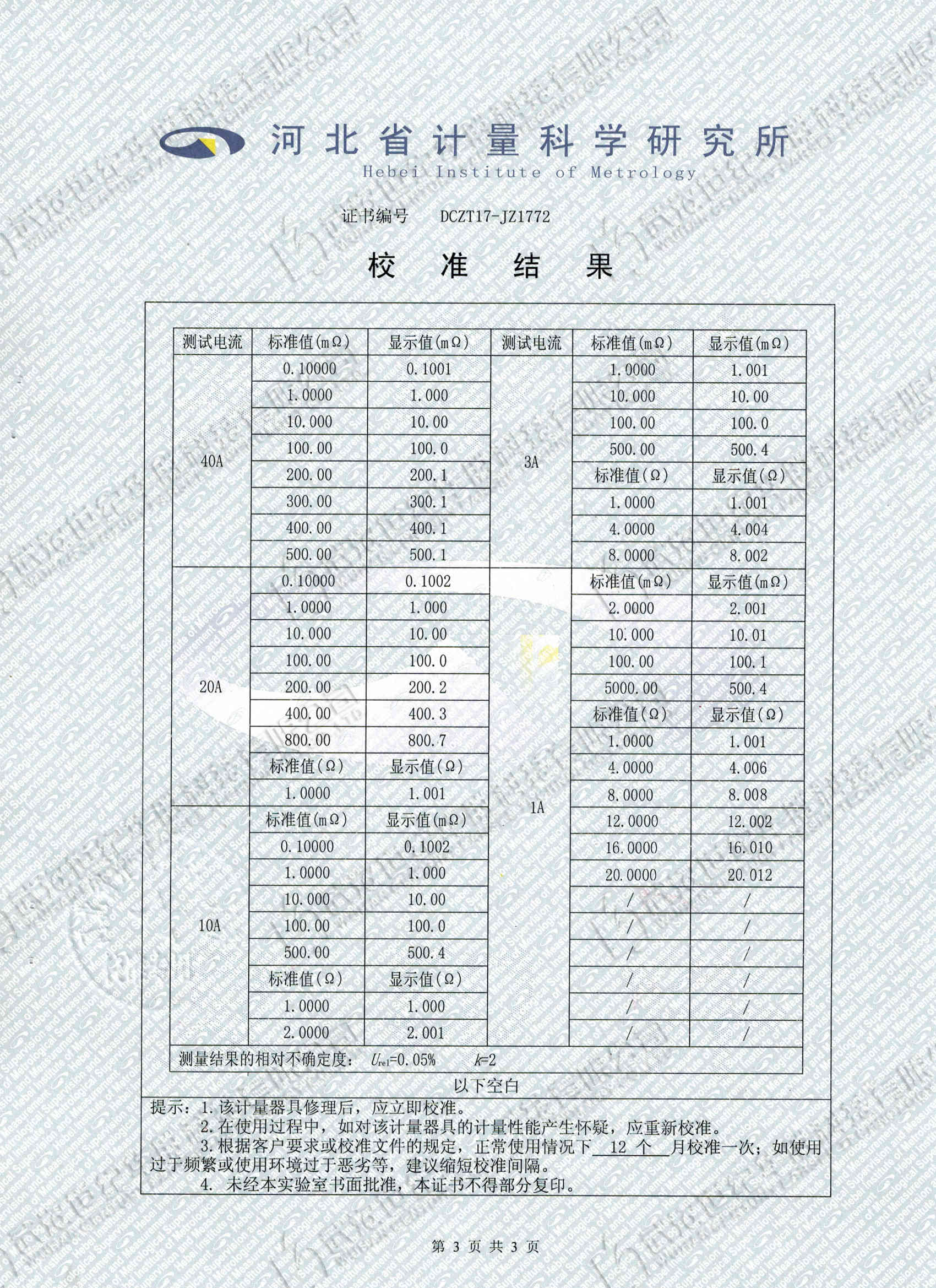2、量程: 50μΩ~500mΩ (40A)